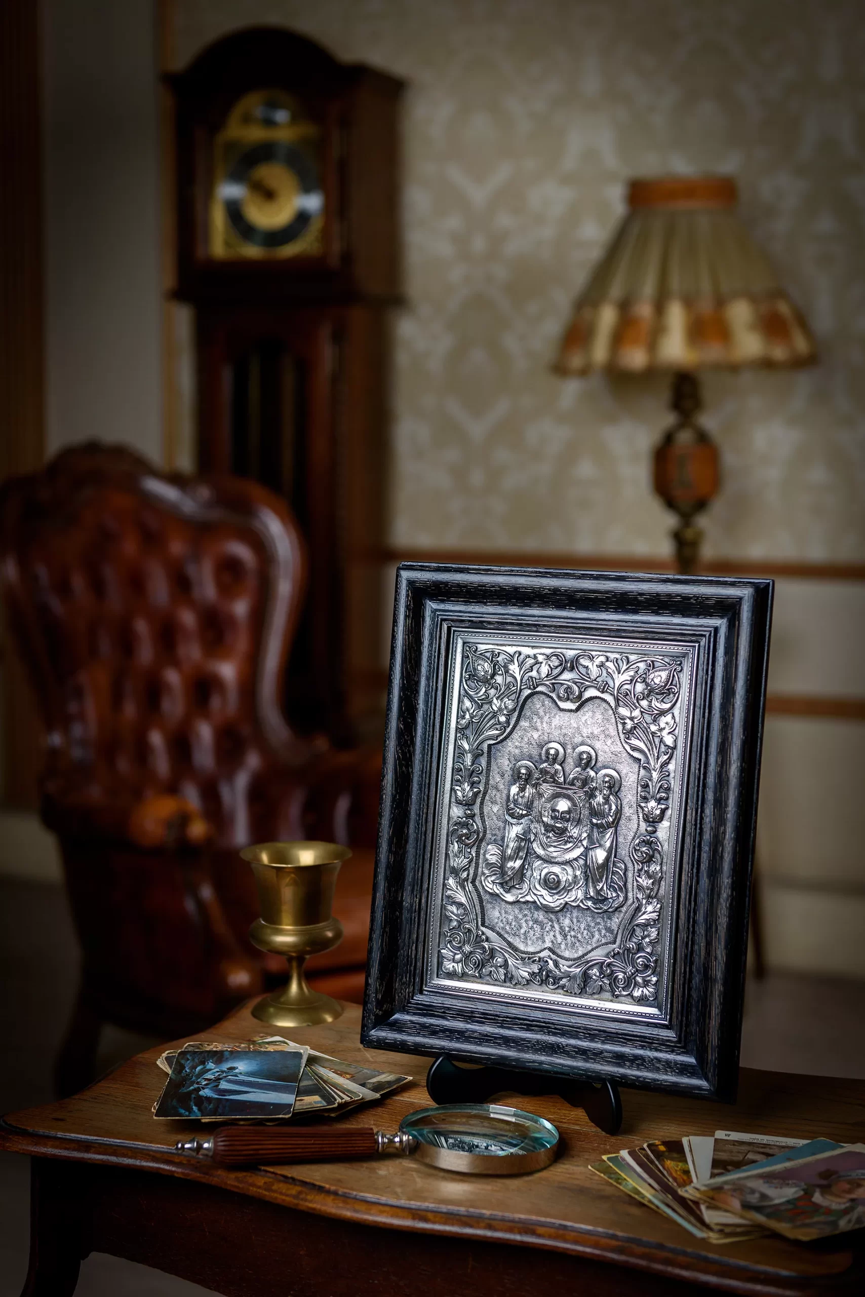 Техника: гальванопластика Используемые материалы: медь с последующим гальваническим серебрением Рама изготовлена из натурального дерева дуб, ясень или других ценных пород.
